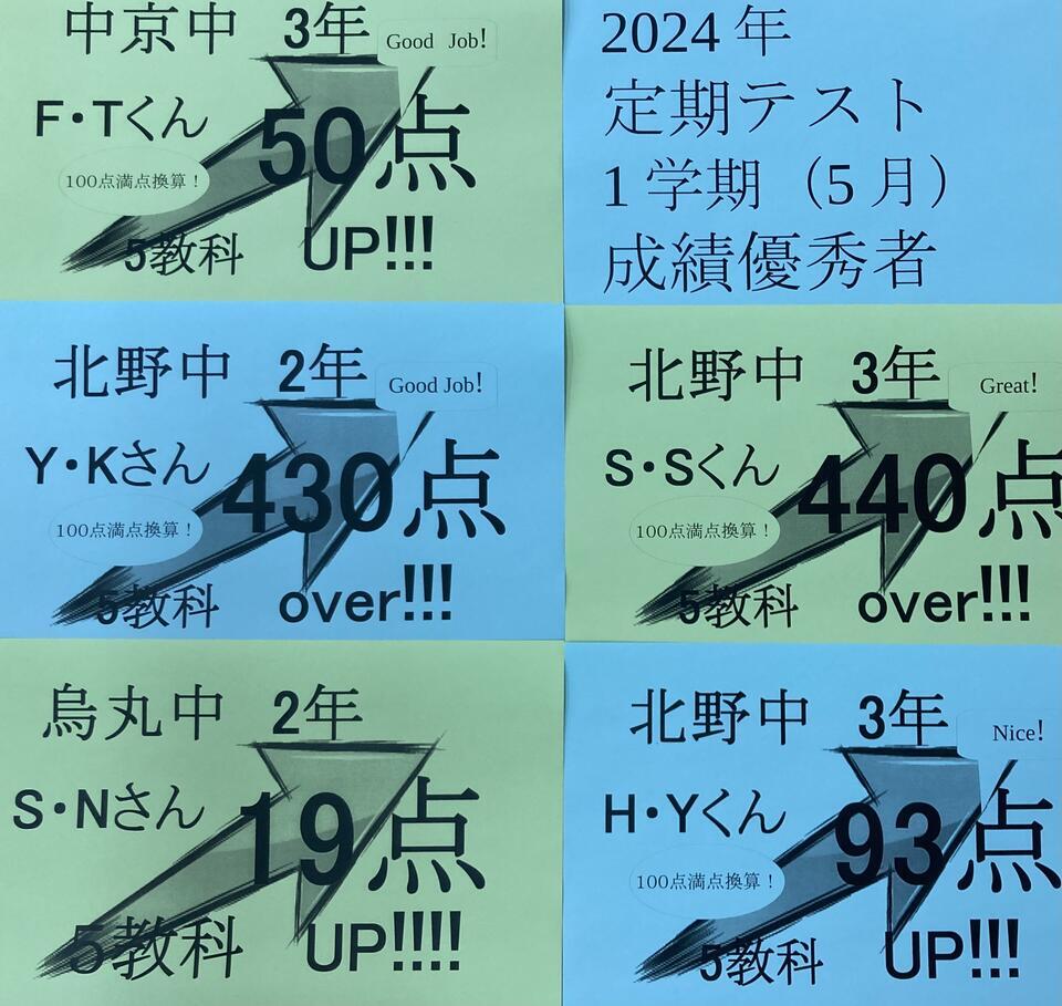 北野中 3年 H・Yくん 5教科 前回から93点UP