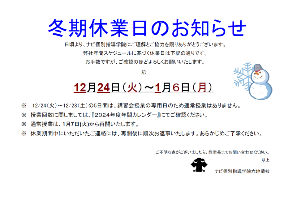 弊社年間スケジュールに基づく休業日は下記の通りです。
