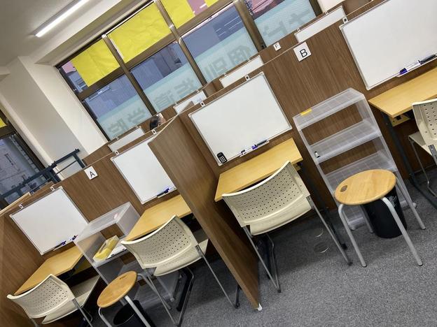 ナビ個別指導学院の授業は、個別の席ごとに設置された自分専用のホワイトボードで解き方や考え方を一緒に確認、それから生徒が問題を解くという「個別授業」スタイルです。