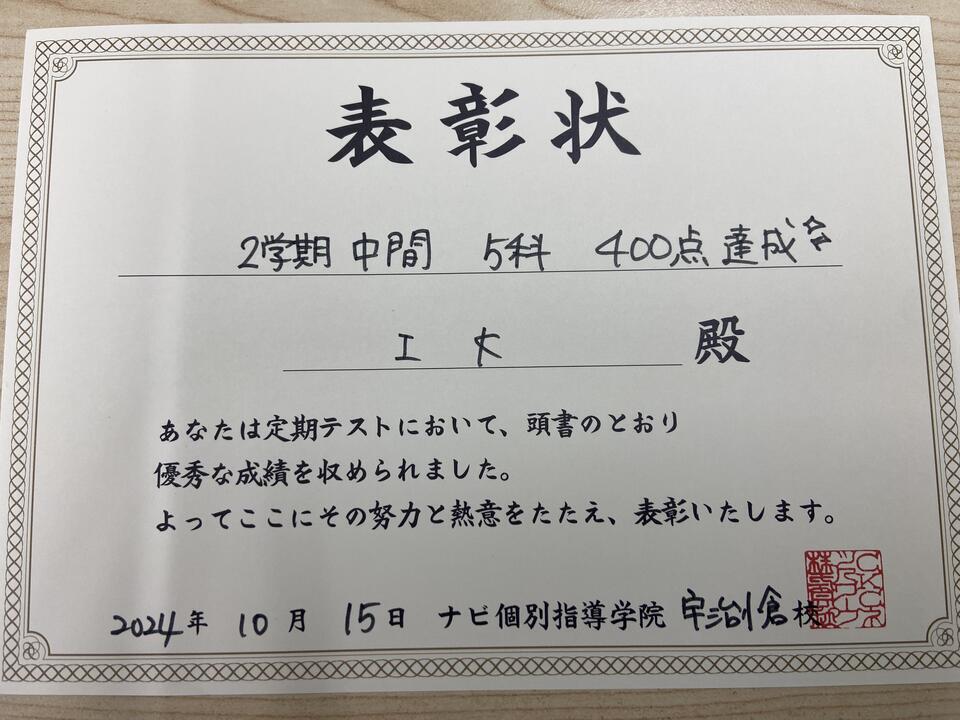 先日、久御山中学の生徒がテスト結果を持ってきてくれました。