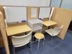 ナビ個別指導学院の授業は、個別の席ごとに設置された自分専用のホワイトボードで解き方や考え方を一緒に確認、それから生徒が問題を解くという「個別授業」スタイルです。