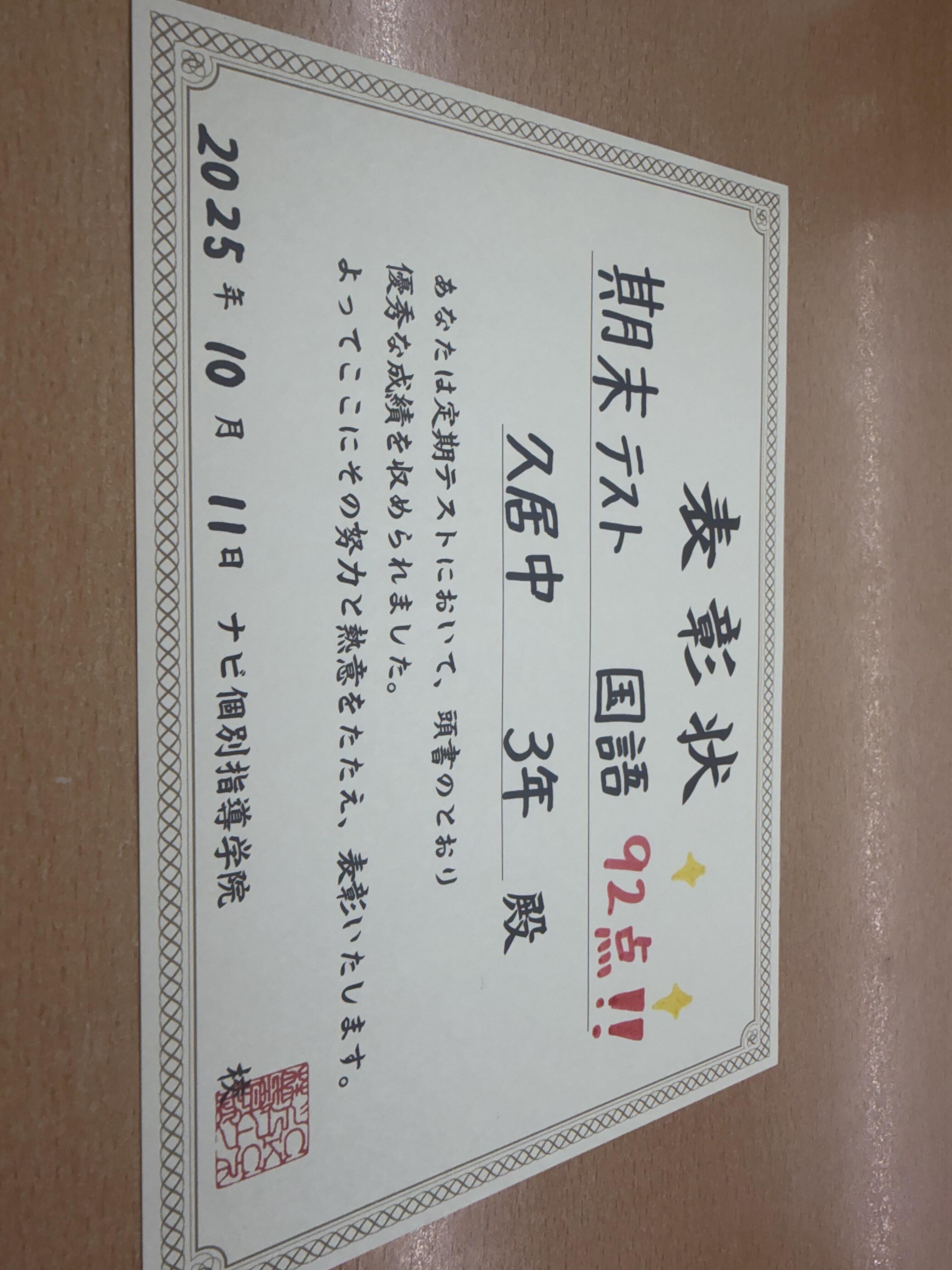 近日の成績アップした生徒をご紹介致します!