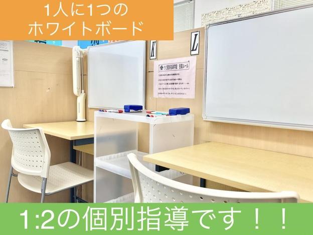 ナビ個別指導学院の授業は、個別の席ごとに設置された自分専用のホワイトボードで解き方や考え方を一緒に確認、それから生徒が問題を解くという「個別授業」スタイルです。