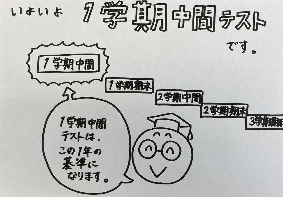 ここで言いたいことは、「1学期中間テストがこの1年の点数の基準となる」