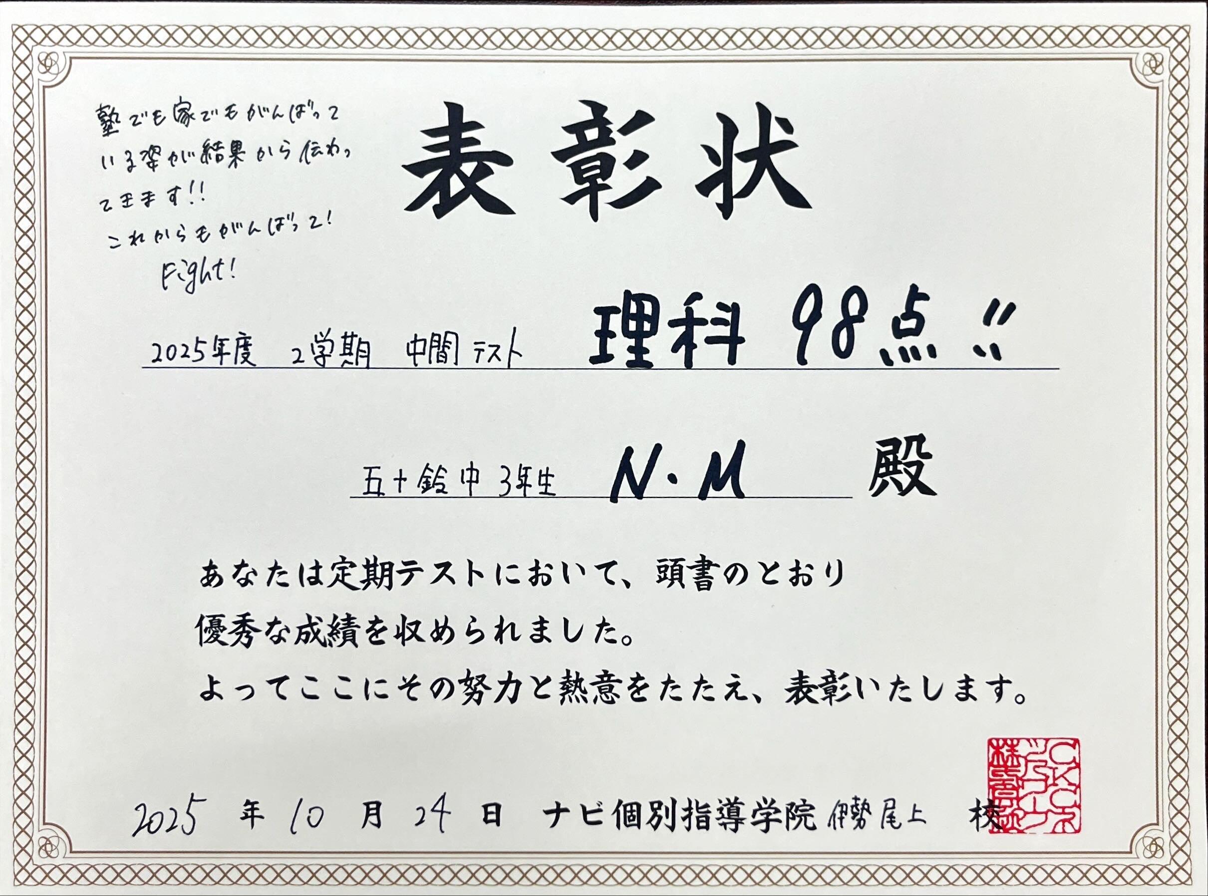 理科 98点!!