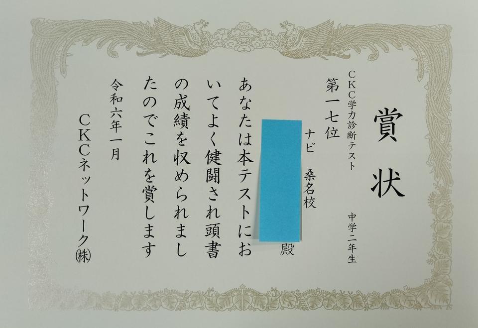 嬉しいナビ全国学力診断テスト表彰者報告です。
