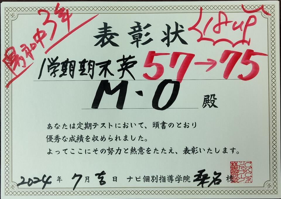 嬉しい1学期 期末テスト成績UP報告です。
