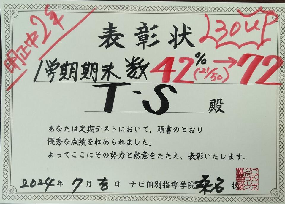 嬉しい1学期 期末テスト成績UP報告です。