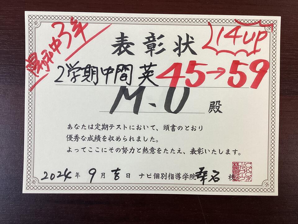 嬉しい1学期 中間テスト成績UP報告です。