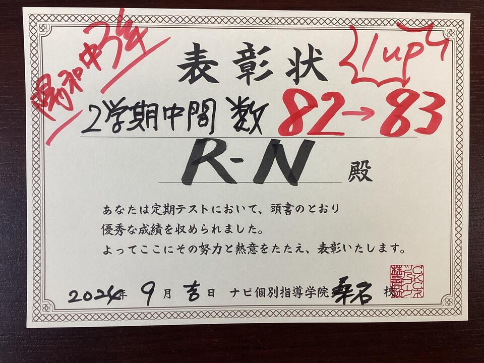 嬉しい1学期 中間テスト成績UP報告です。