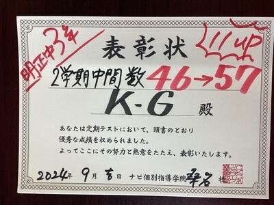 嬉しい1学期 中間テスト成績UP報告です。