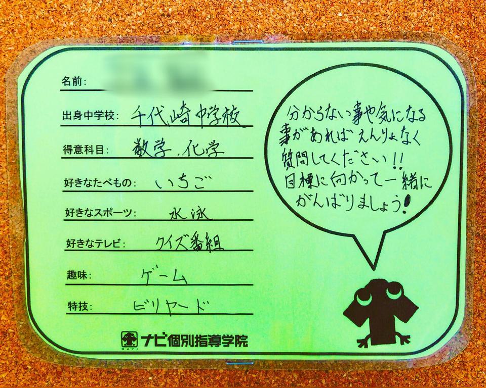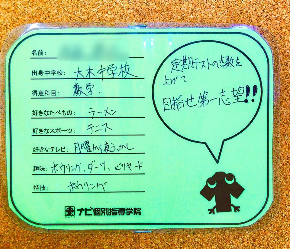 ナビ個別指導学院の授業は、個別の席ごとに設置された自分専用のホワイトボードで解き方や考え方を一緒に確認、それから生徒が問題を解くという「個別授業」スタイルです。
