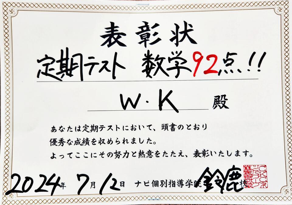 それでも悔しいKさん!次回は100点獲得しよう!(おめでとう!!)