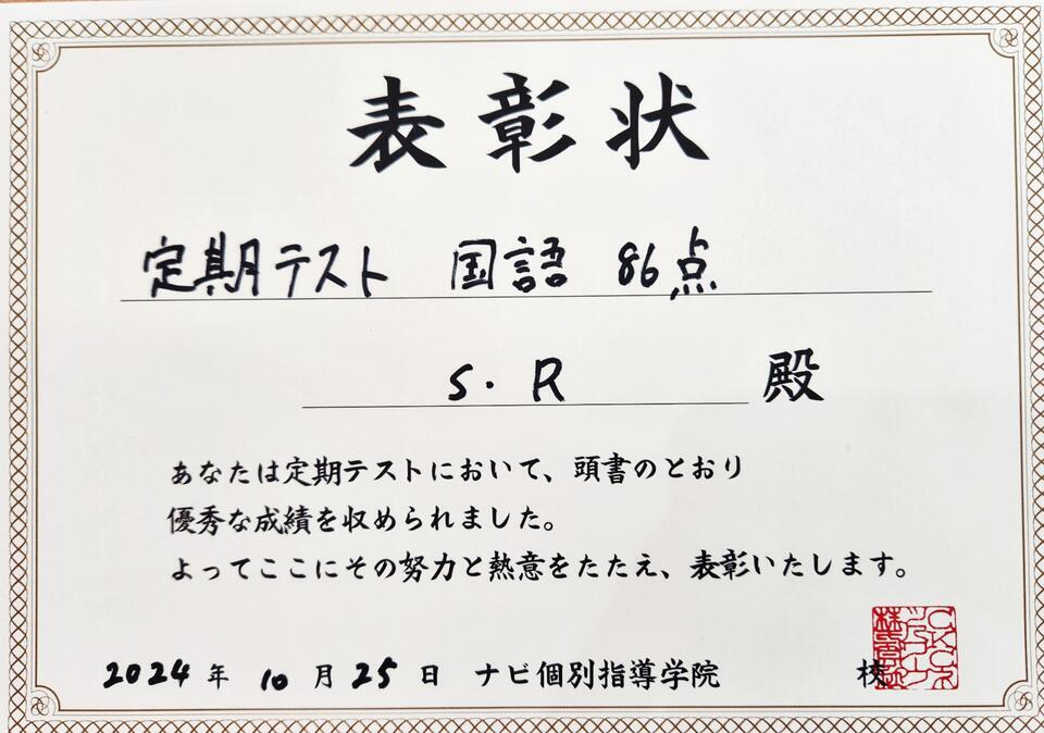 課題だった漢字はなんとパーフェクト!勉強成果を十分に発揮してくれました!