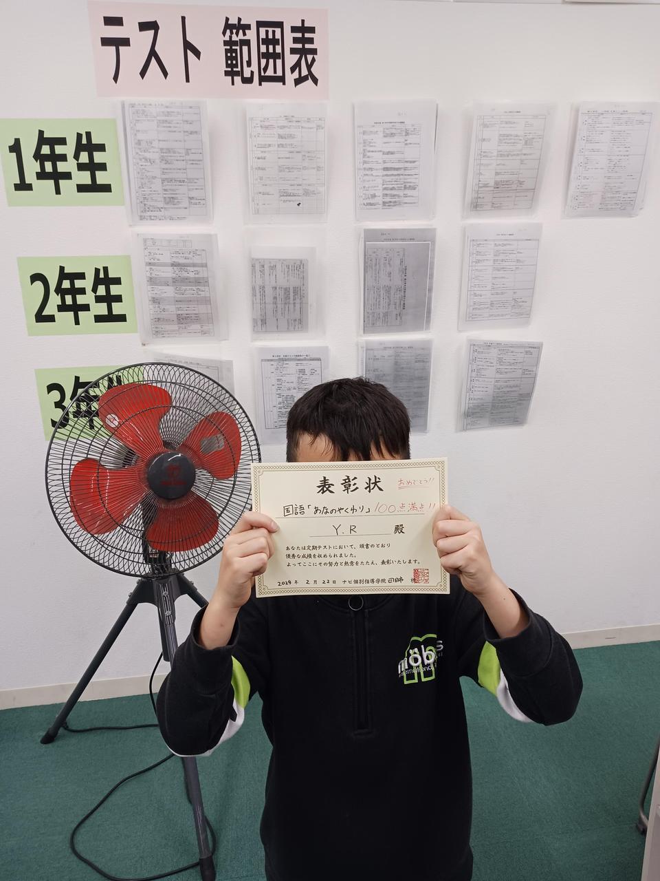 写真は国語「あなのやくわり」100点満点のYくんです!!!