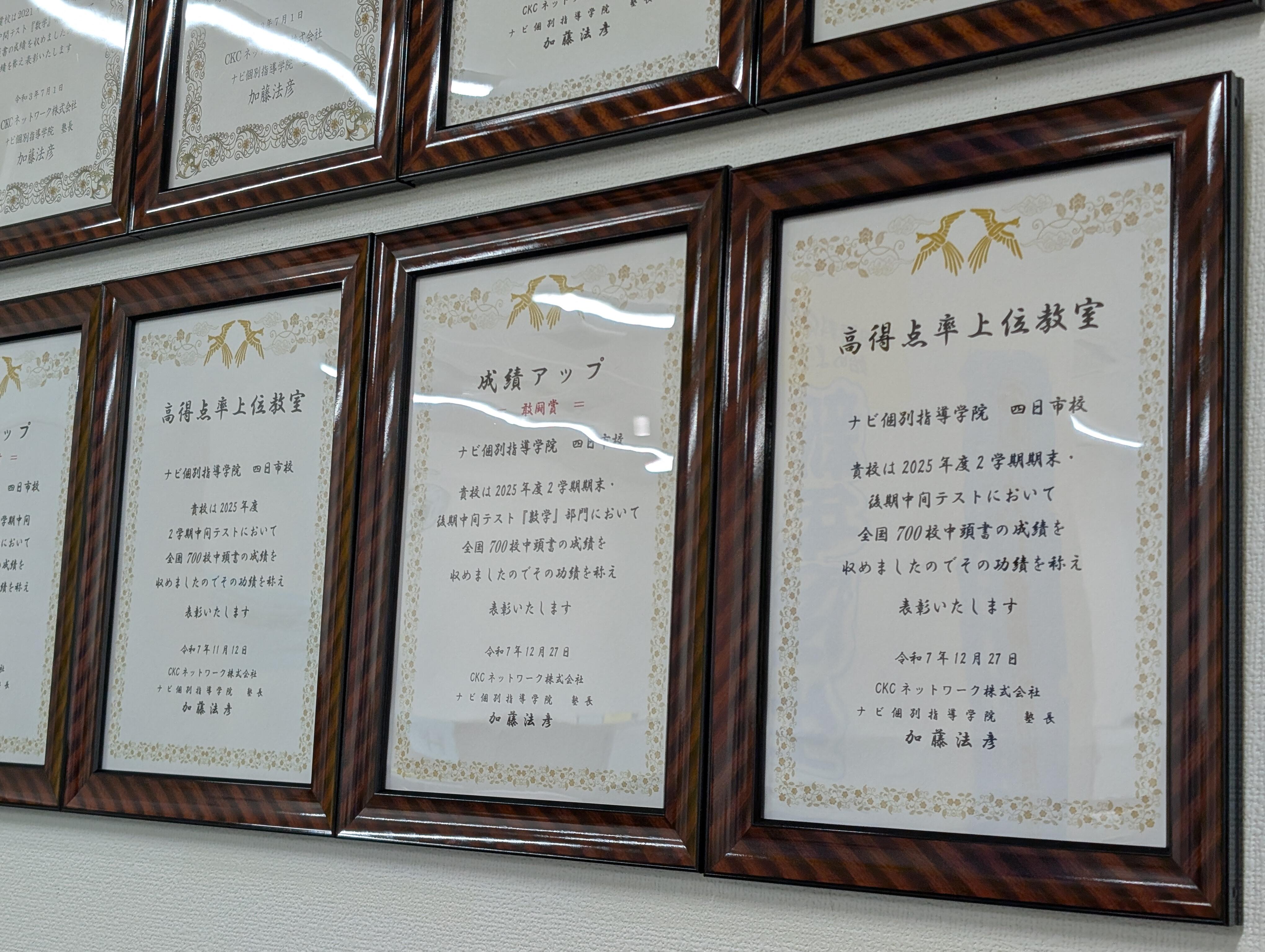 2学期期末テストも表彰状が届きました!