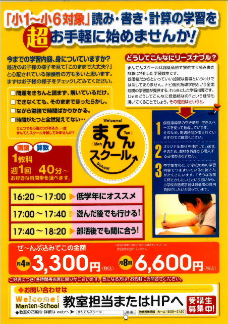 小学校1年生から始められる「まんてんスクール」をご紹介します!