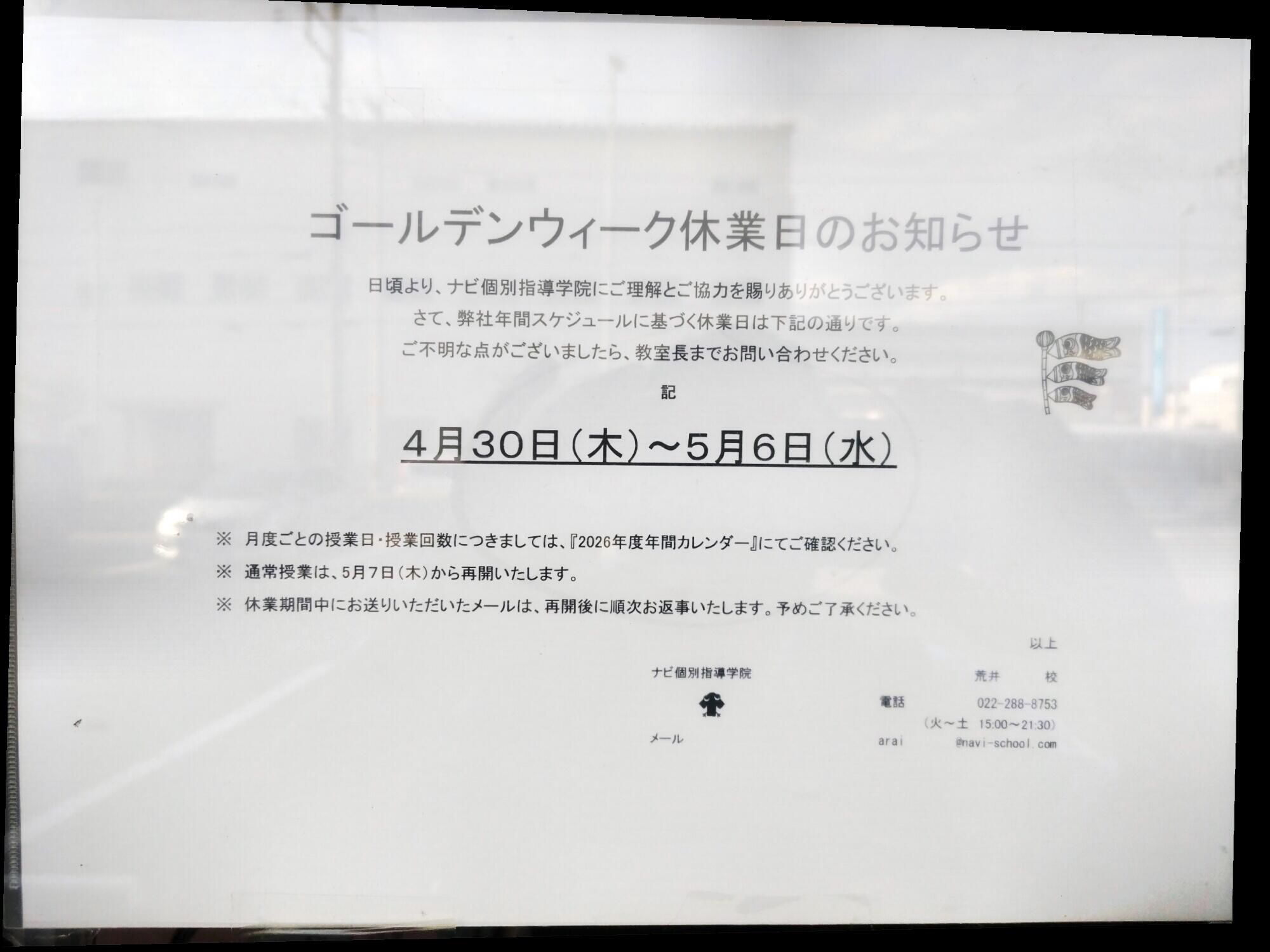 日頃より、ナビ個別指導学院にご理解とご協力を賜りありがとうございます。