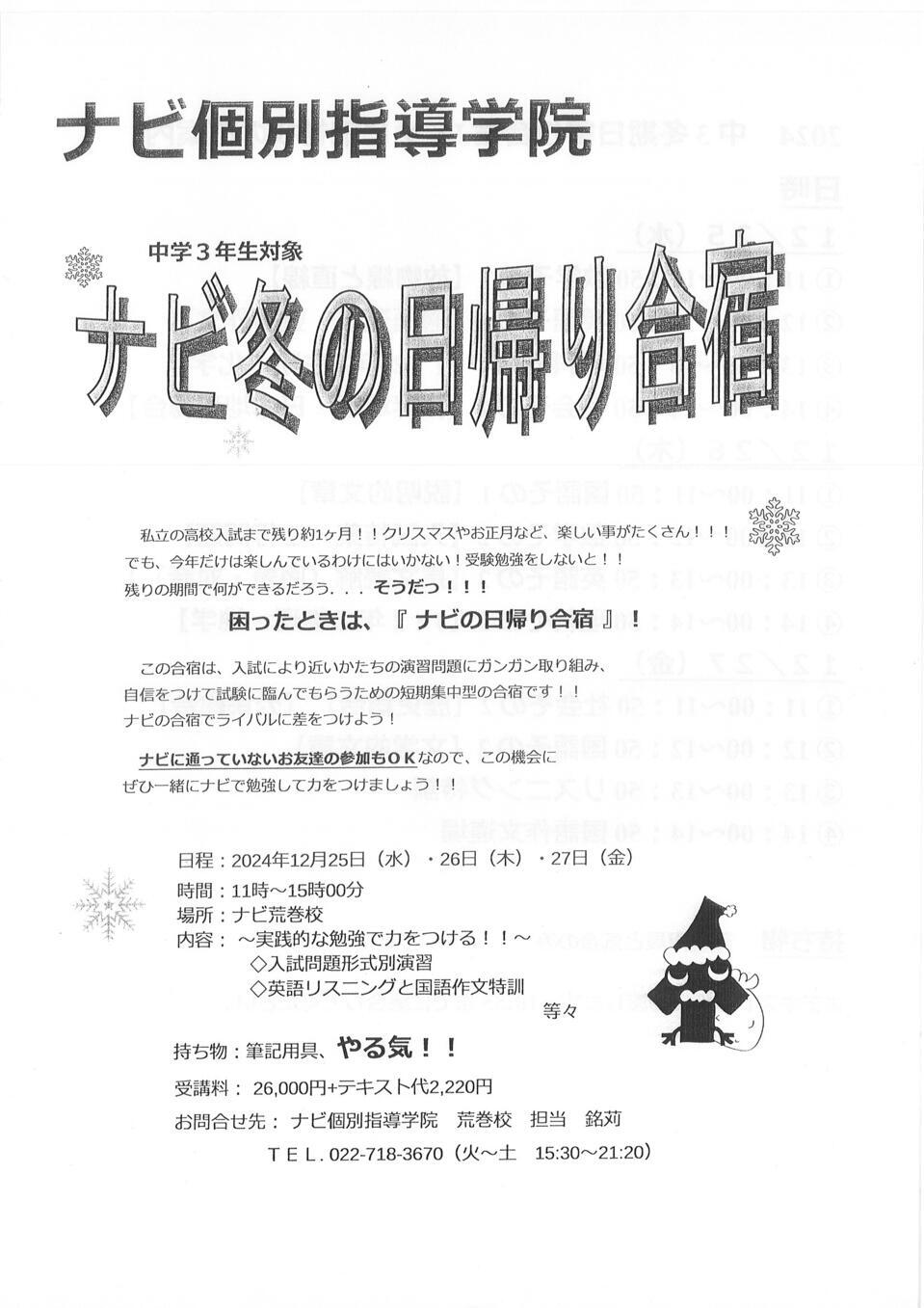 冬期合宿・入試対策ともに入試に出やすい単元を中心に進めていきます。