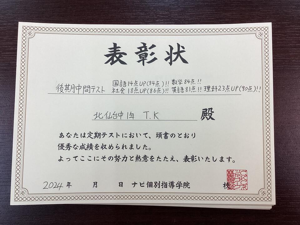 今回は成績アップ事例第2弾です!