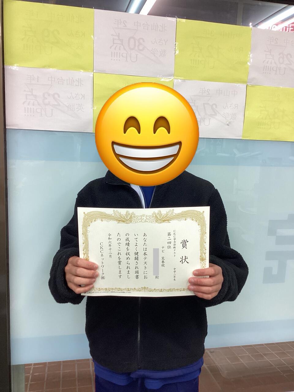 何と冬の回次で全国24位の成績を収めた生徒さんがいました!!!