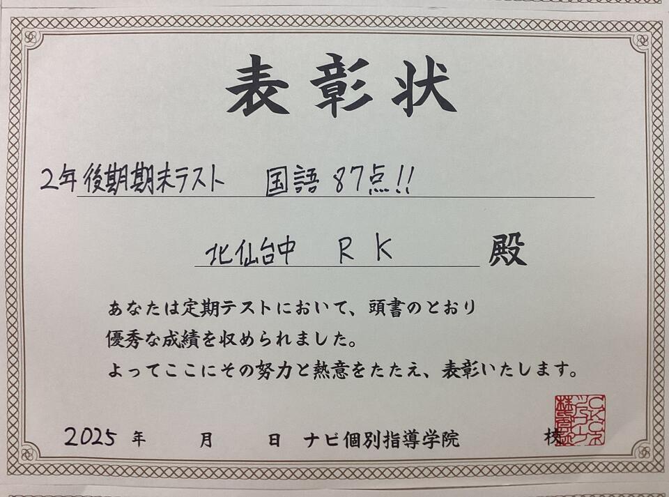 2024年度後期期末テストの成績UPした生徒さんたちのご紹介