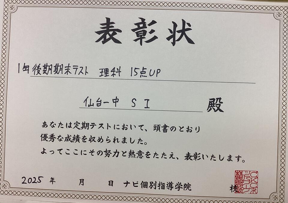 2024年度後期期末テストの成績UPした生徒さんたちのご紹介です!