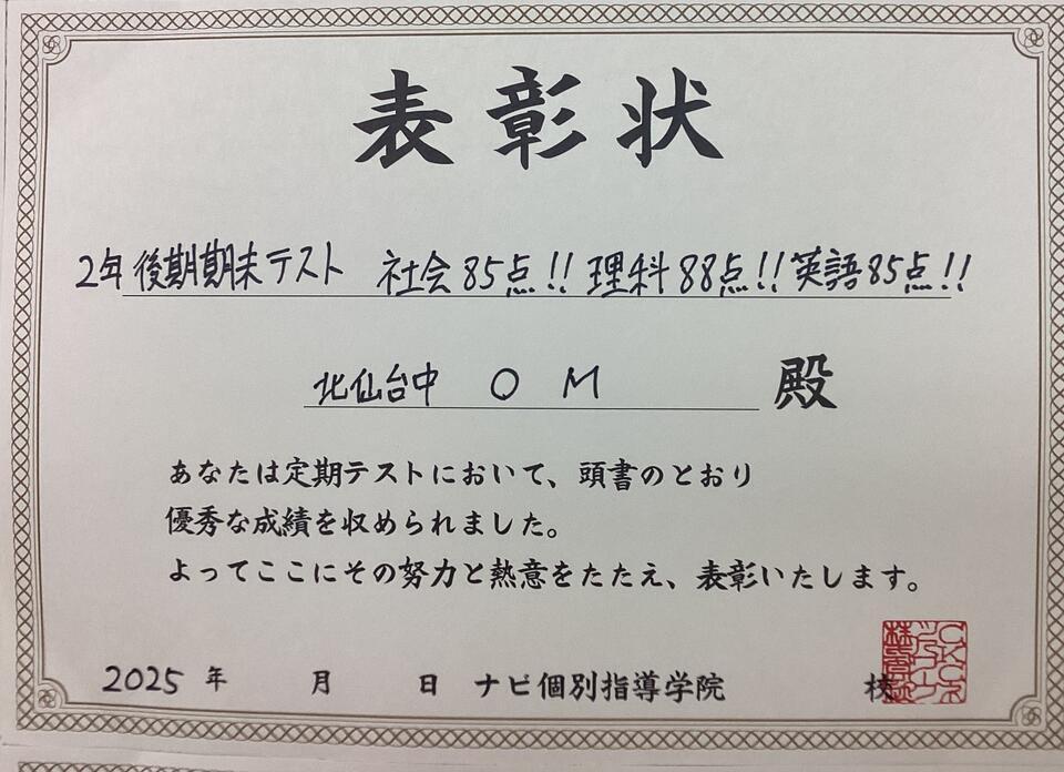 2024年度後期中間テストの成績UPした生徒さんたちのご紹介です!