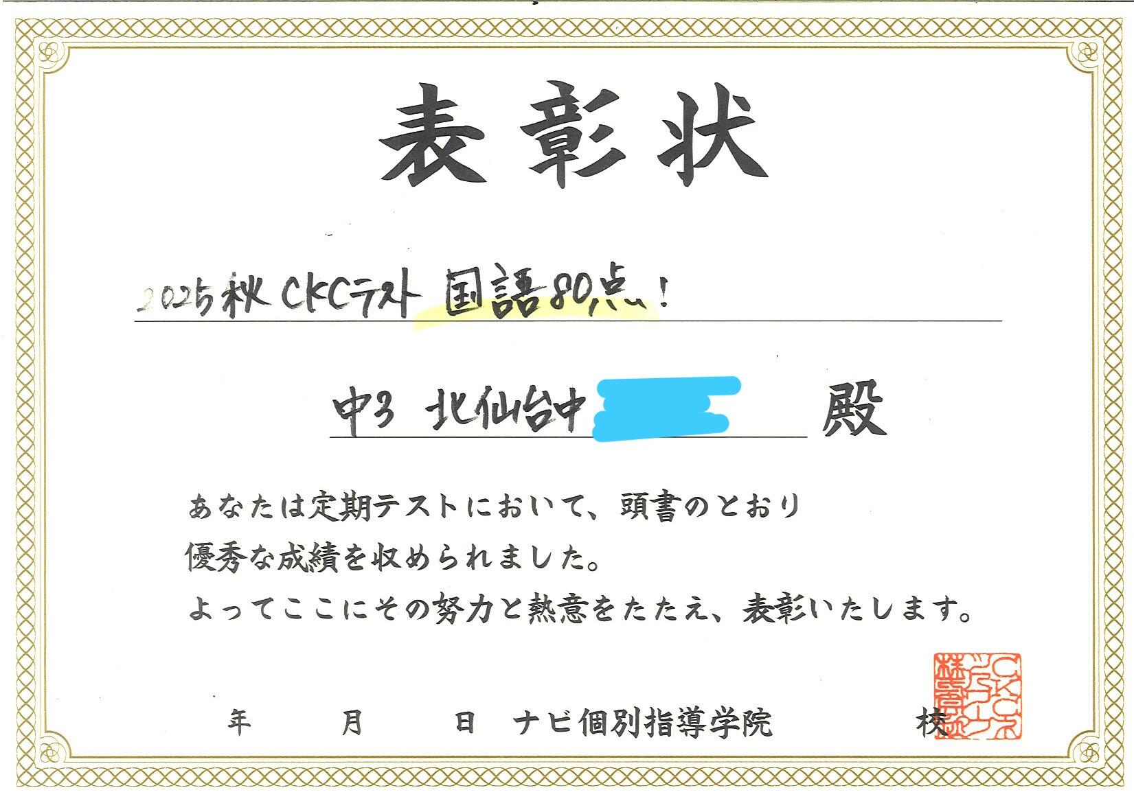 "成績UP事例" 2025秋 中学3年CKCテスト表彰式✨