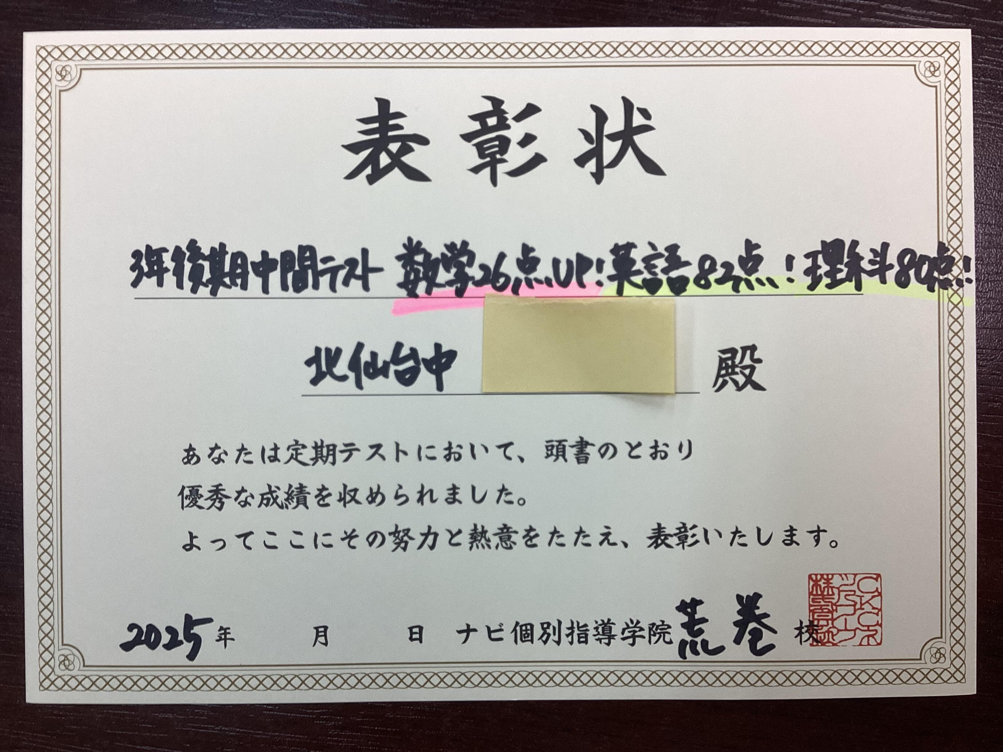 "成績UP事例" 2025 中学3年後期中間テスト✨です!!