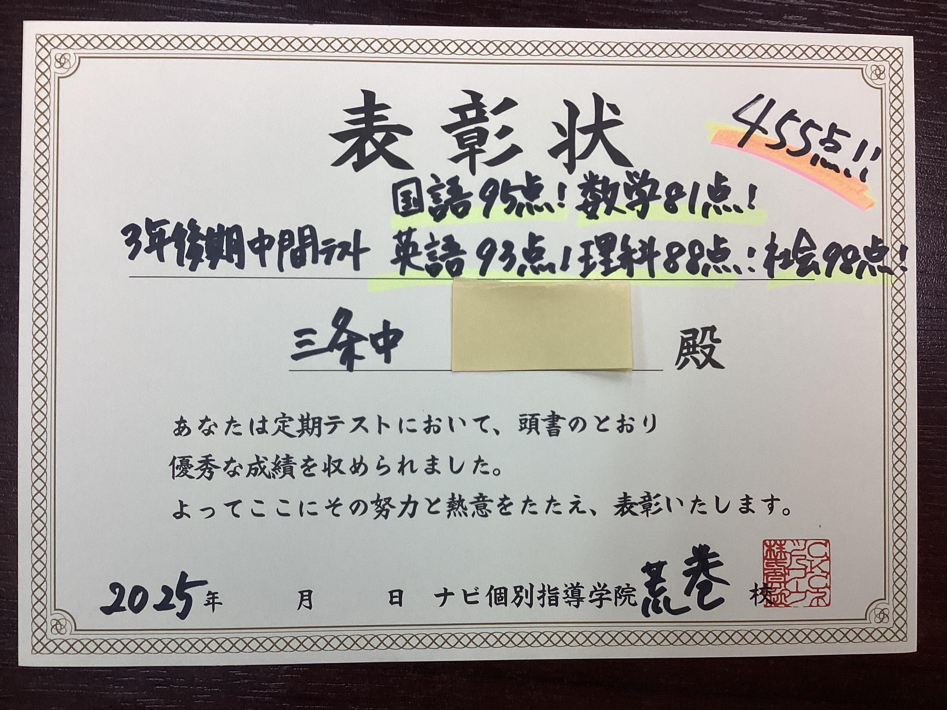 "成績UP事例" 2025 中学3年後期中間テスト✨です!!