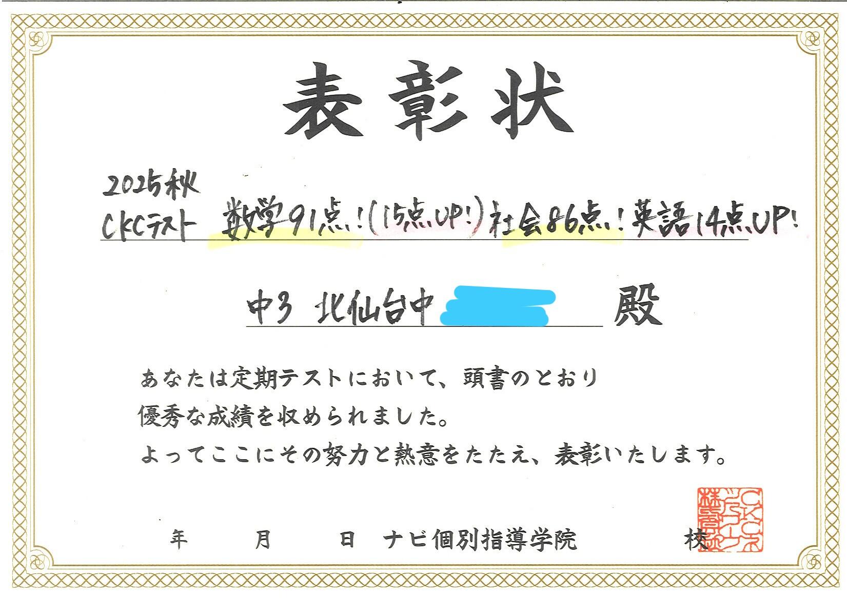 "成績UP事例" 2025秋 中学3年CKCテスト表彰式✨