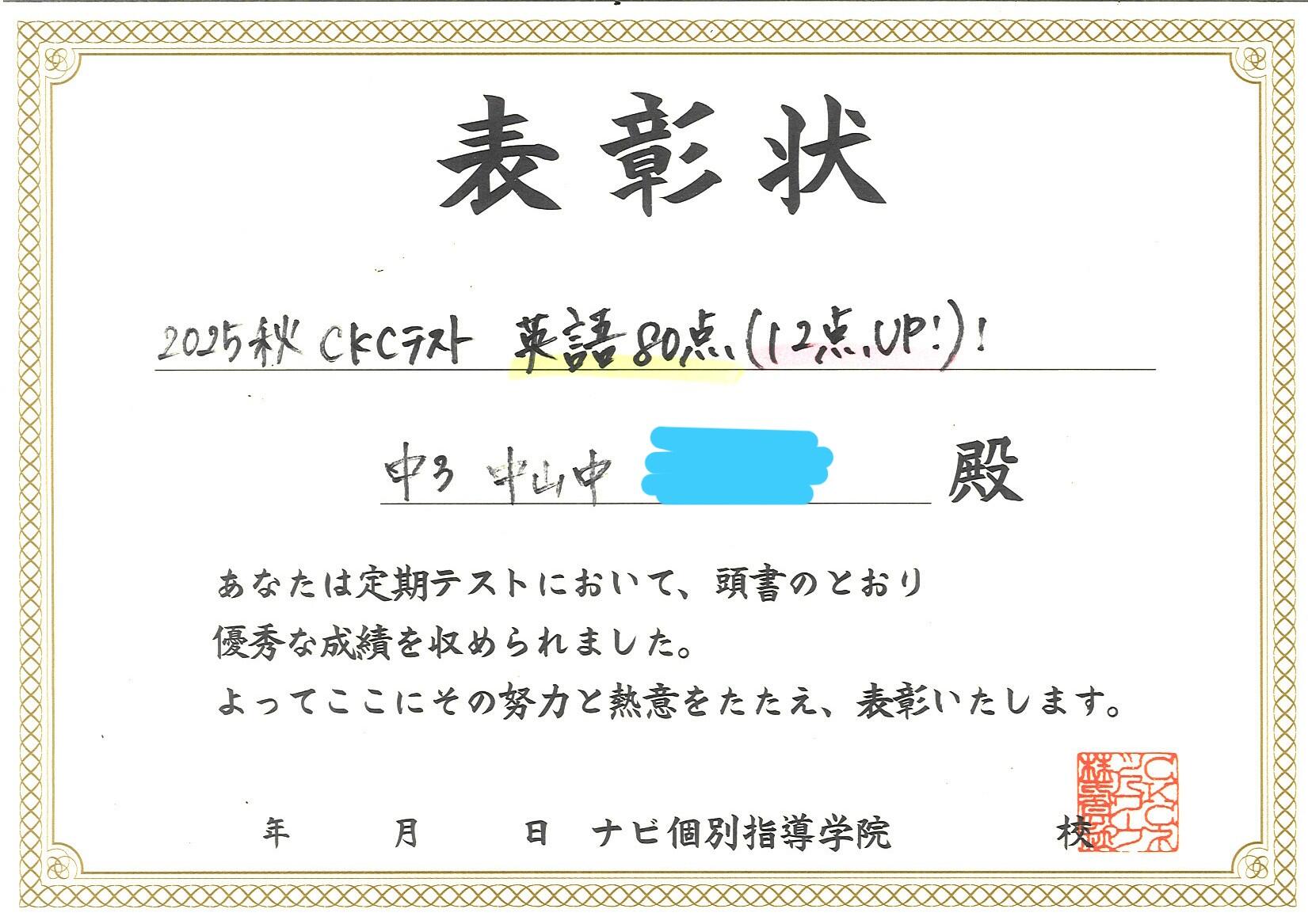 "成績UP事例" 2025秋 中学3年CKCテスト表彰式✨