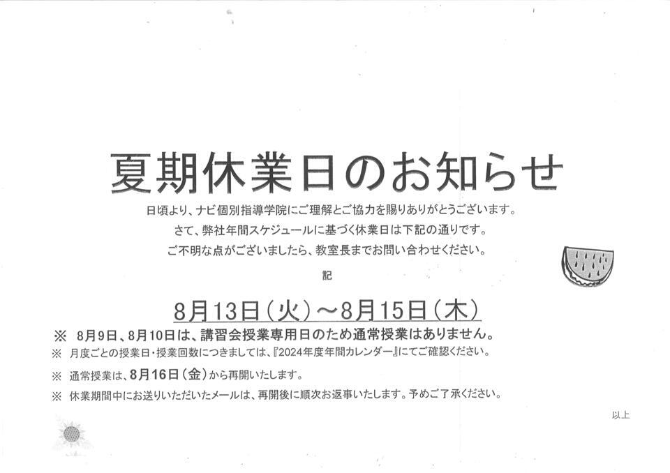 日頃より、ナビ個別指導学院にご理解とご協力を賜りありがとうございます。