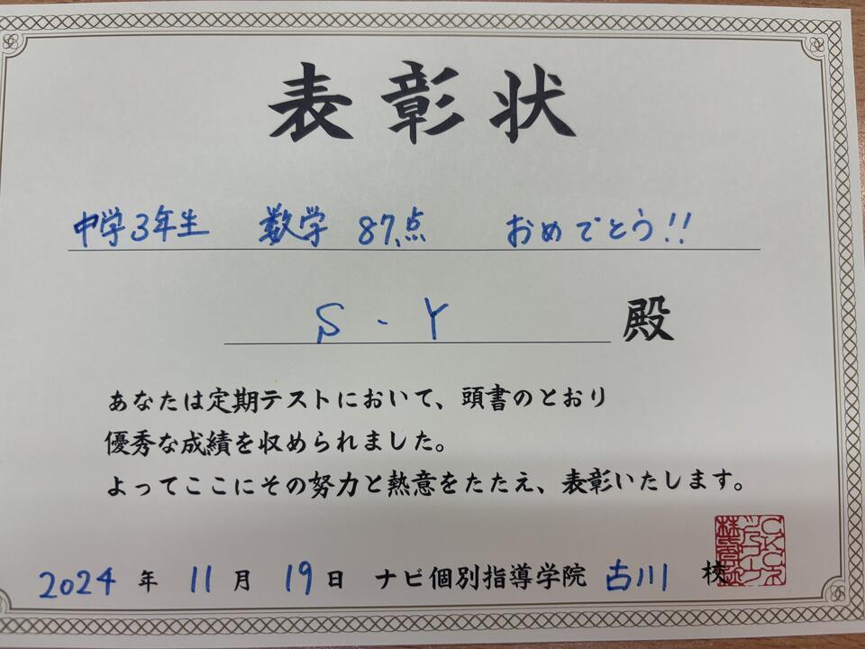 ☆中3 後期中間 数学 87点☆