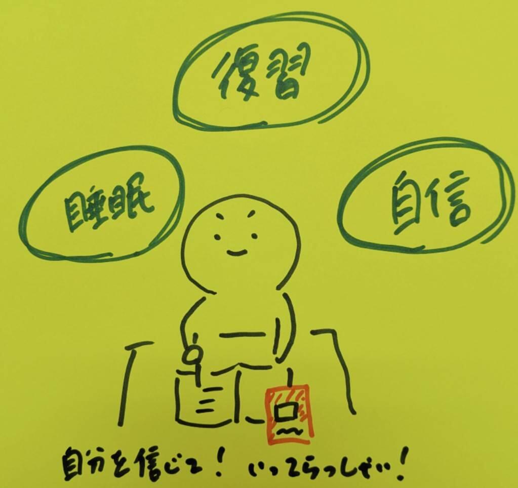 ③睡眠をしっかりとって元気に試験会場へ向かうこと の3つです!