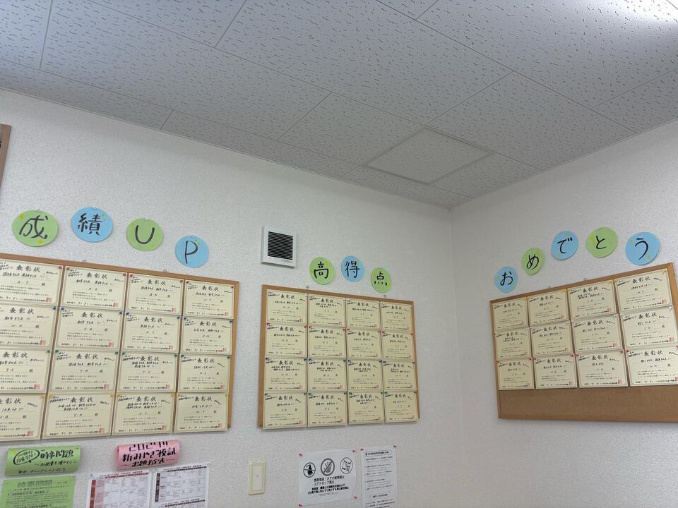 (ナビでは、成績アップ・高得点の生徒に表彰状を書き掲示しております。)