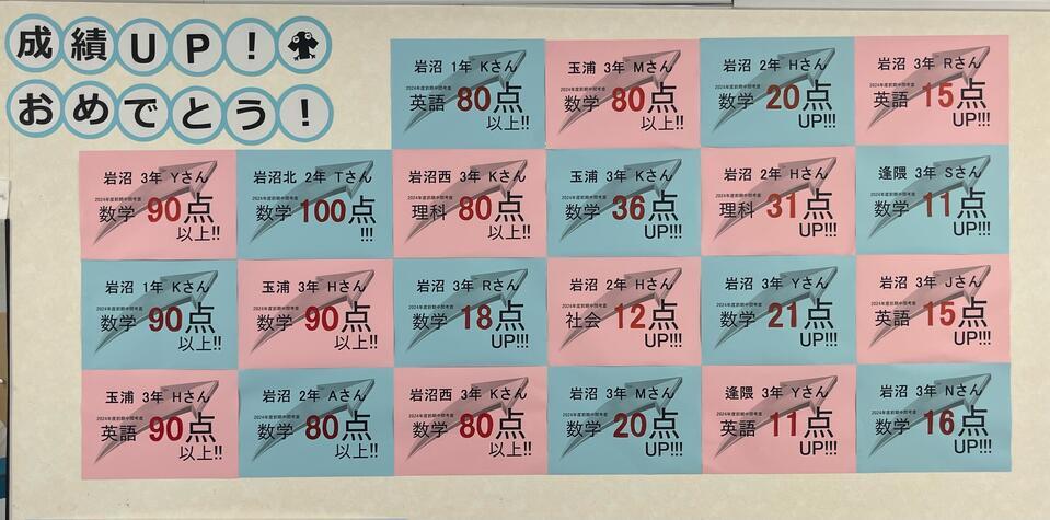 上記の3名以外にも、沢山高得点や点数UPした生徒さんがいます!