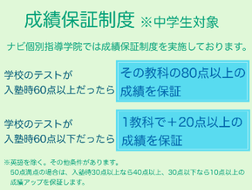 生徒の努力を結果に繋げる「成績保証ができる仕組み=成績保証制度」を確立しています。