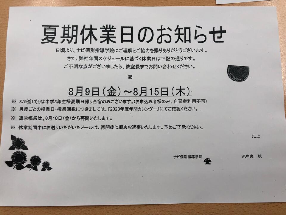 当塾では、8月9日〜8月15日まで、夏期休業となっております。
