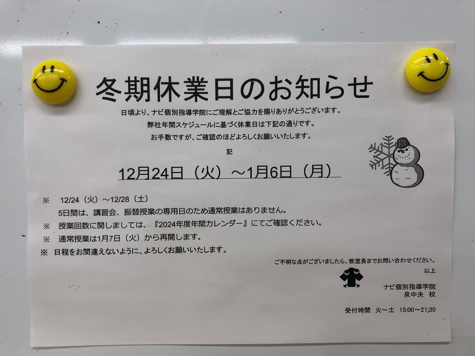 ※12/24(火)〜12/28(土)に関しましては、講習会、振替授業専用日の為、通常授業はお休みです。(自習室利用可)