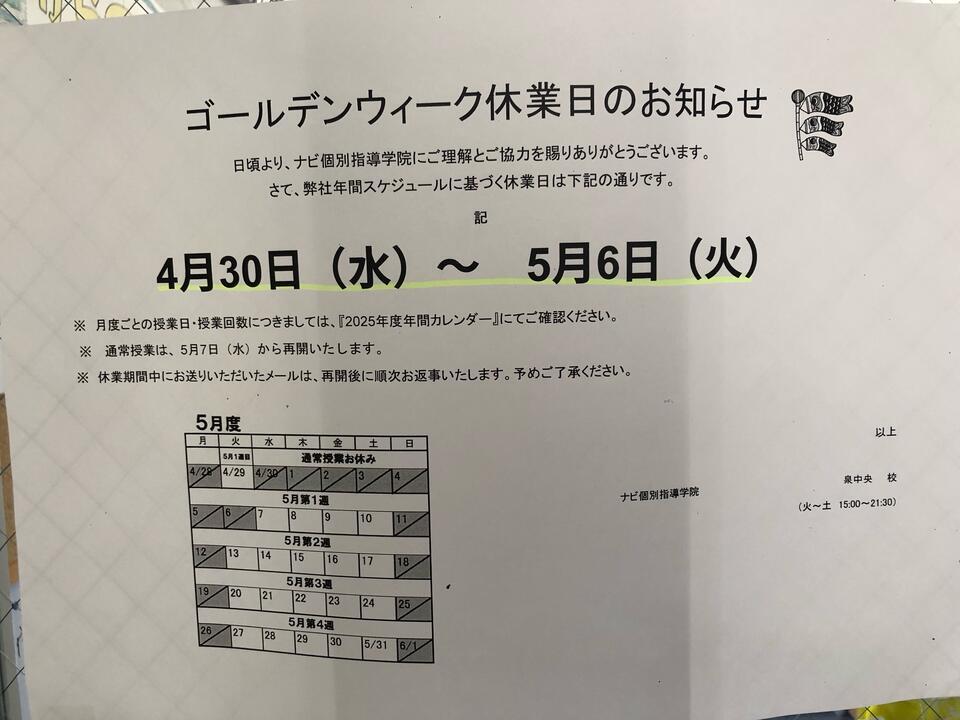 日頃より、ナビ個別指導学院にご理解とご協力を賜りありがとうございます。