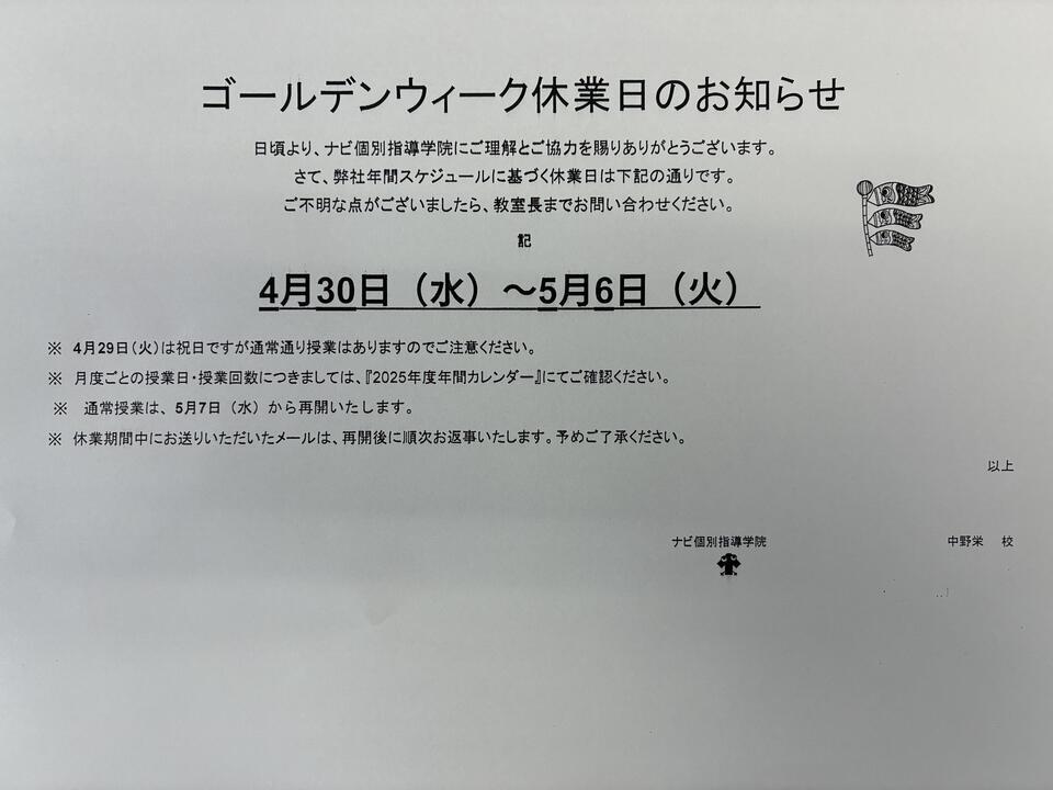 通常授業は5月7日㈬より再開いたします。