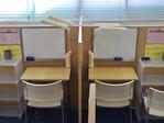 ナビ個別指導学院の授業は、個別の席ごとに設置された自分専用のホワイトボードで解き方や考え方を一緒に確認、それから生徒が問題を解くという「個別授業」スタイルです。