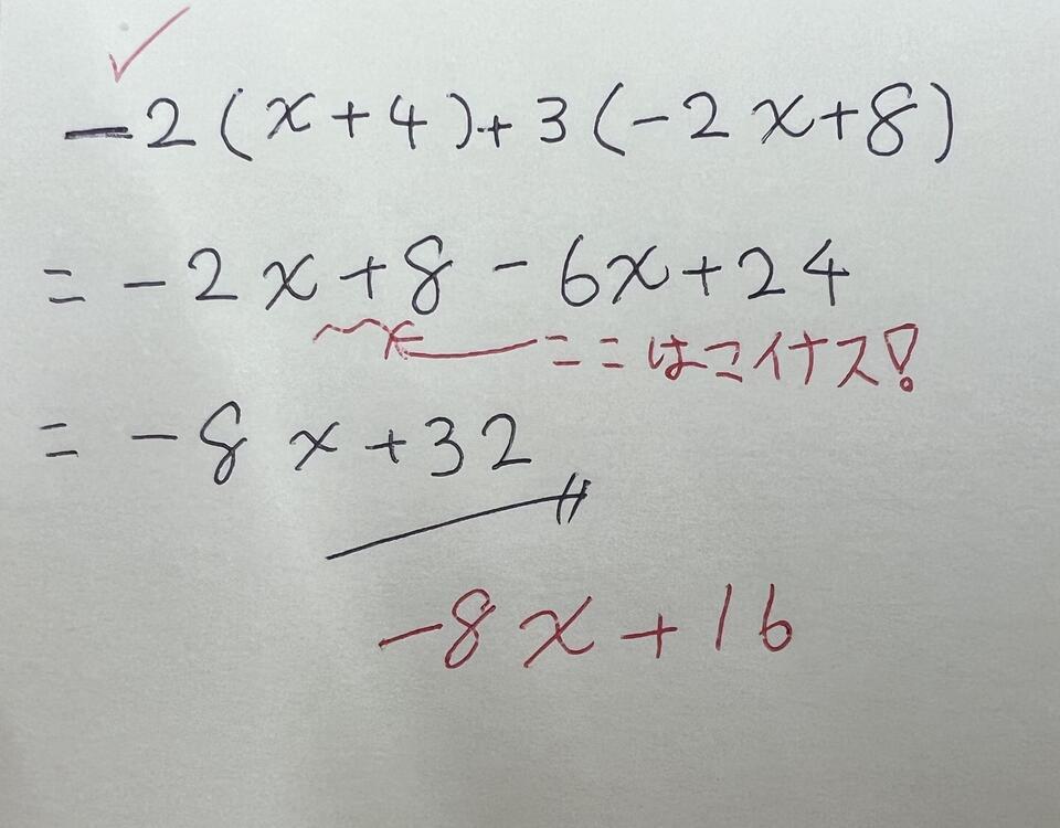 ②途中計算を書いている人は、「ここで符号ミスをしていた。」と答えました。