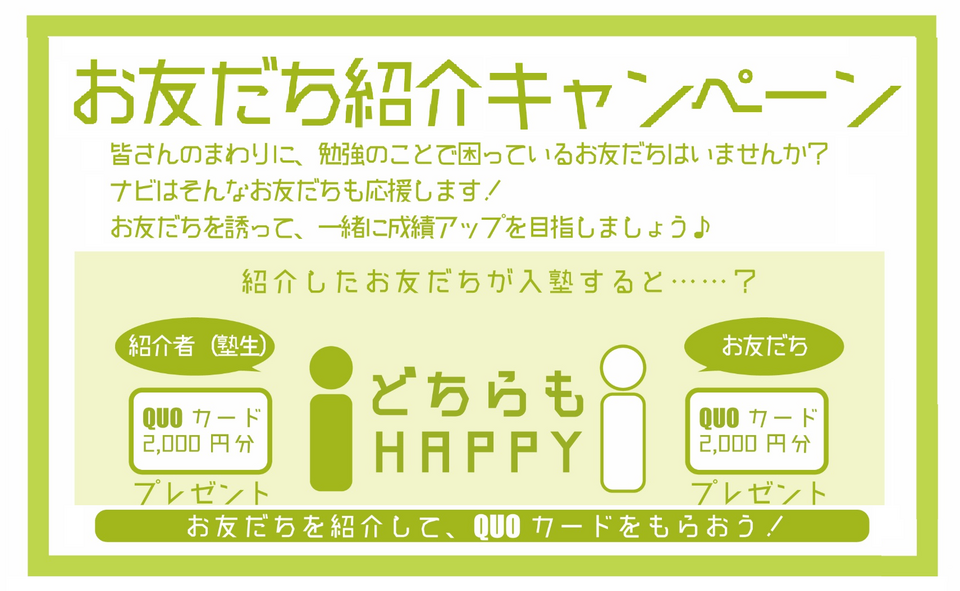 ナビでは、友人・きょうだい紹介キャンペーンを実施中です!