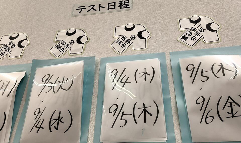 中学校では 夏休みが終わると実力テスト、定期テストが