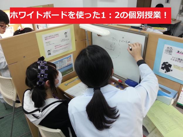 ナビ個別指導学院の授業は、個別の席ごとに設置された自分専用のホワイトボードで解き方や考え方を一緒に確認、それから生徒が問題を解くという「個別授業」スタイルです。