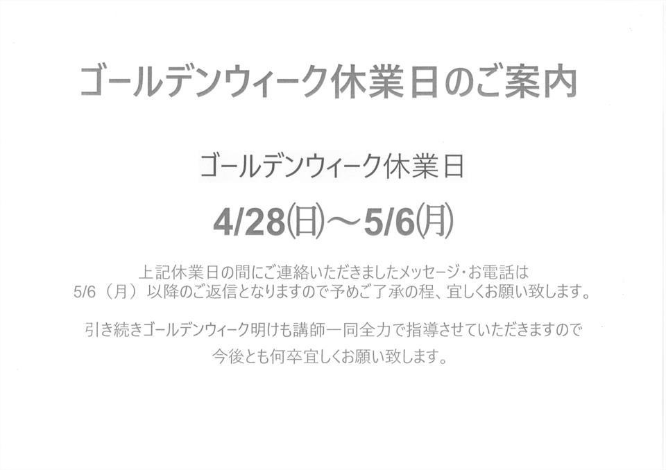 ナビ個別指導学院は4月29日~5月6日まで休講になります。