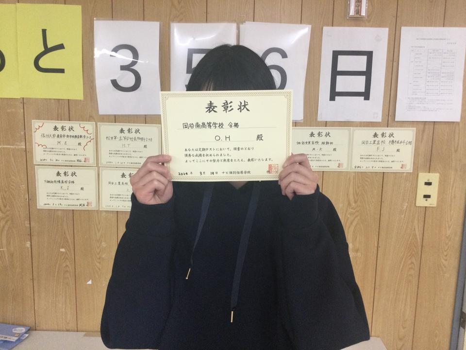 この度、第一志望の岡谷南高校に無事合格しました!!